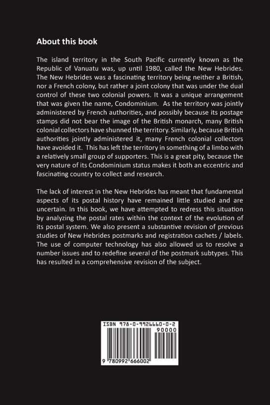This situation encouraged Malcolm Goyns and myself to bring together our many years of research in these areas and write a book that we hope will be of interest and value to fellow collectors of New Hebrides postal history.