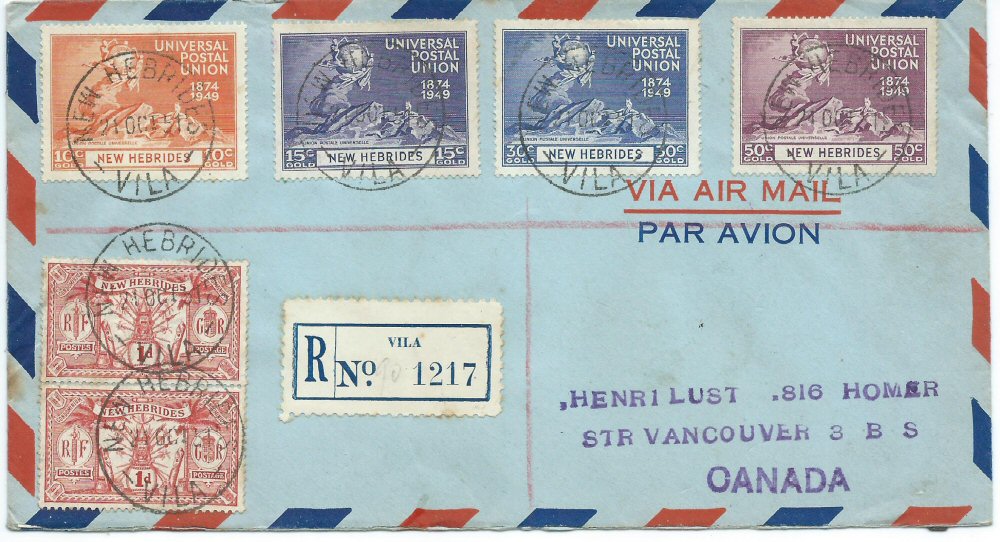 Registered air mail letter from Vila to Vancouver Canada.