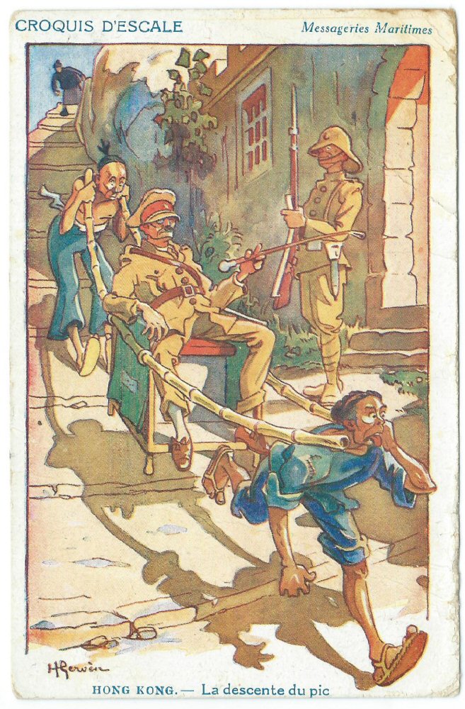 MESSAGERIES MARITIMES postcard "Croquis d'escale à Hong Kong" to Nouméa.
