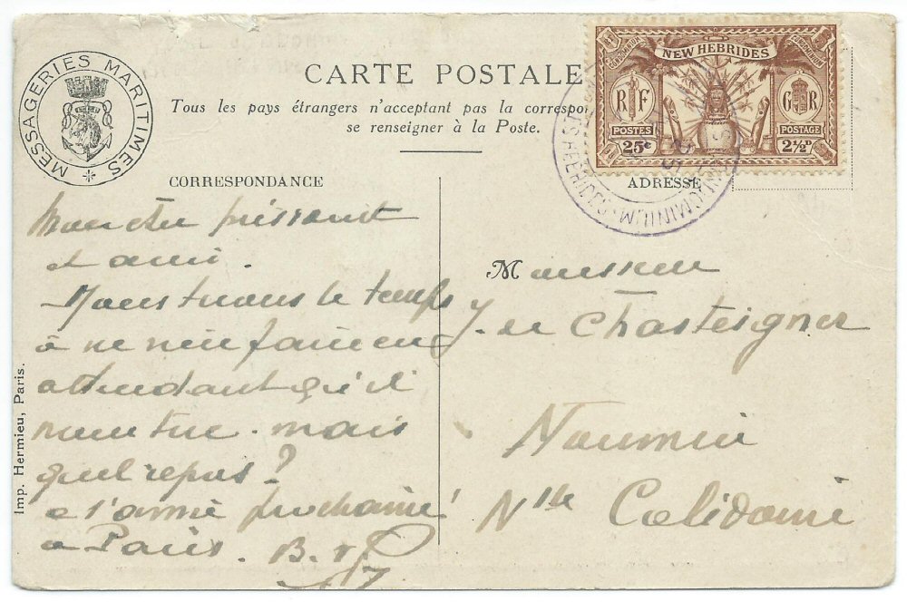 Postcard from Vila to Paagoumene New Caledonia with the letter rate 50c (as quite often)