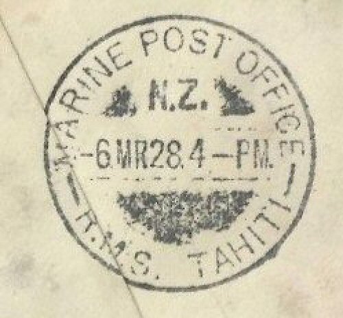 with a mute squared circle (used on MANGANUI). A 6 NOV 1935 (!) MARINE POST OFFICE / R.M.S.MAUNGANUI postmark alongside.