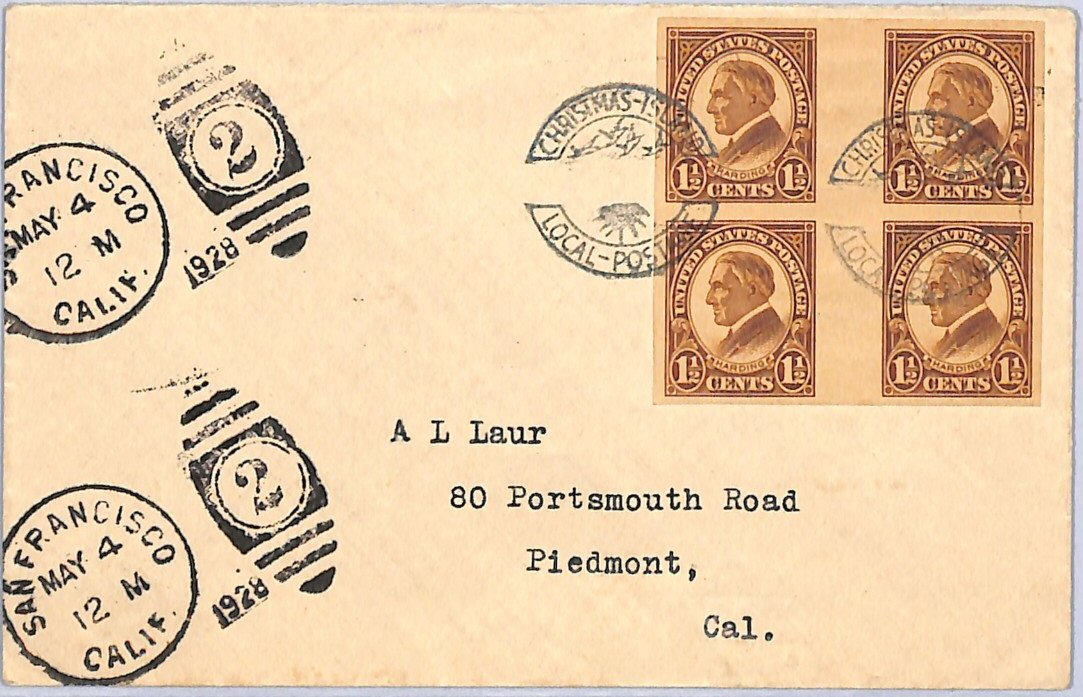 Very scarce: early incoming mail to Christmas Island. Addressed to the temporary manager (last part of 1921 and 1922) at Christmas Island,