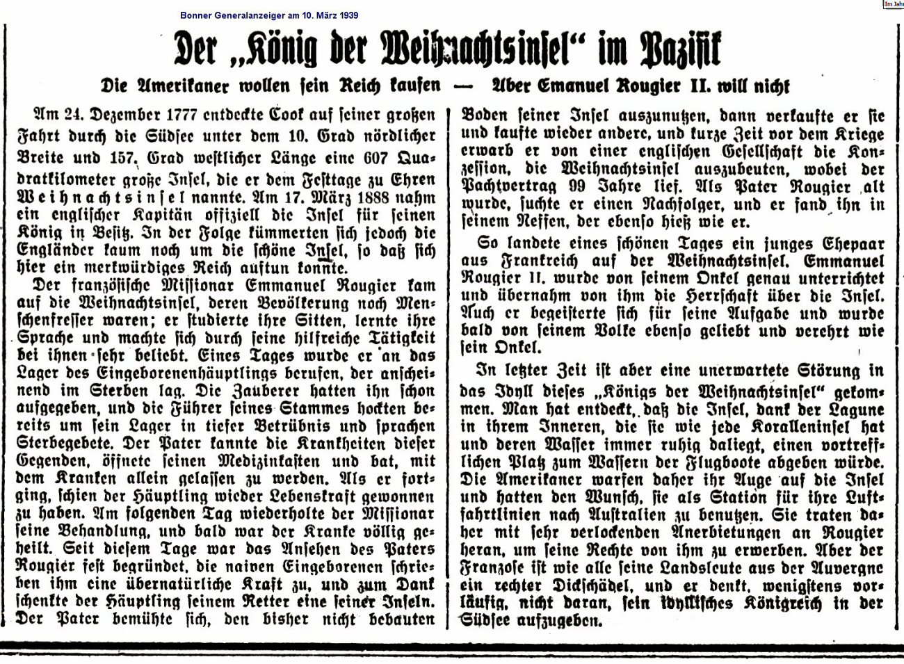 The "King of Christmas Island" in the Pacific