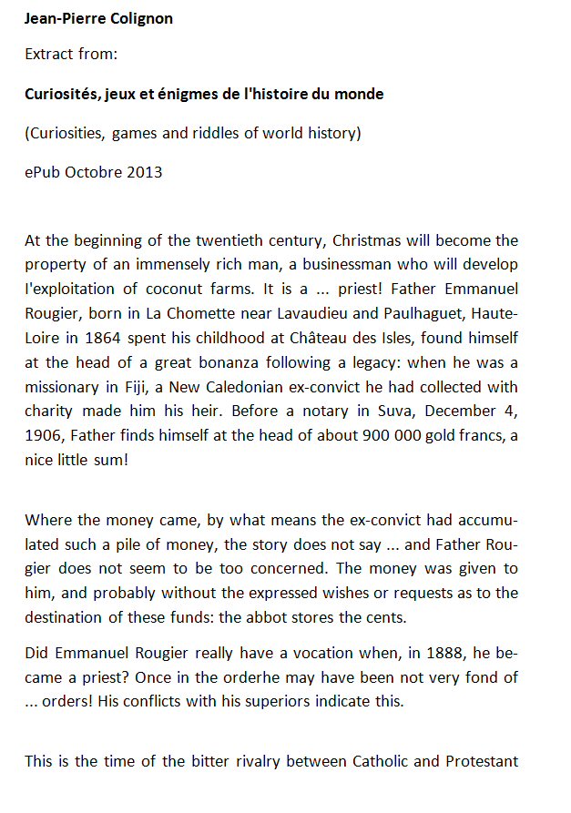 Jean-Pierre Colignon wrote this Book (& e-book): "Curiosités, jeux et énigmes de l'histoire du monde" from which the following text on Father Rougier is quoted.