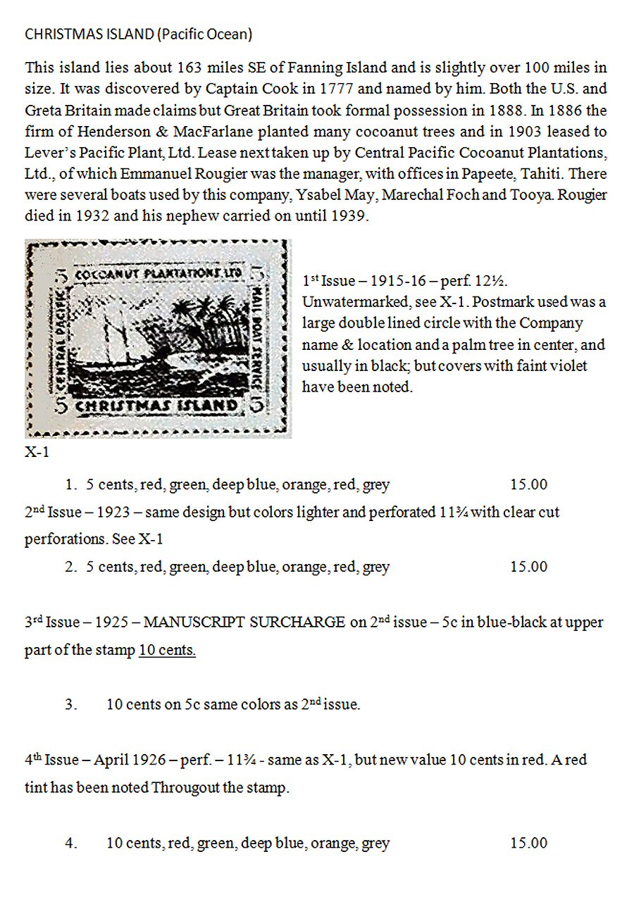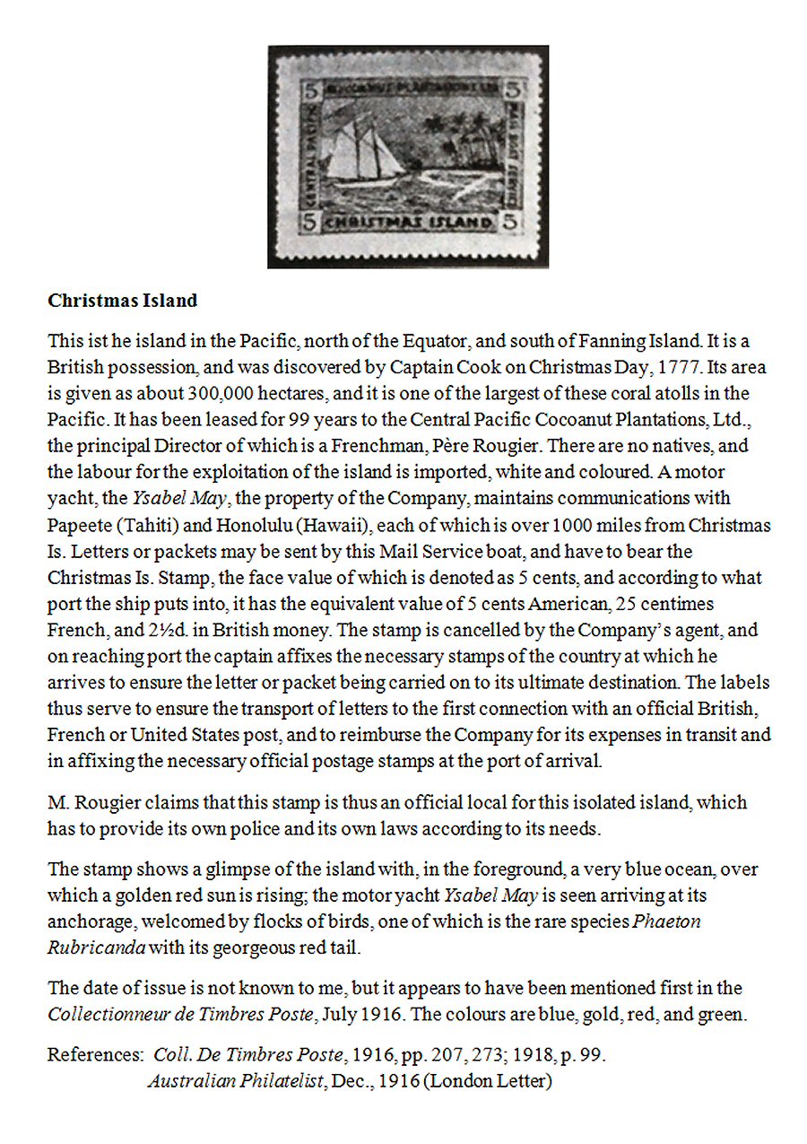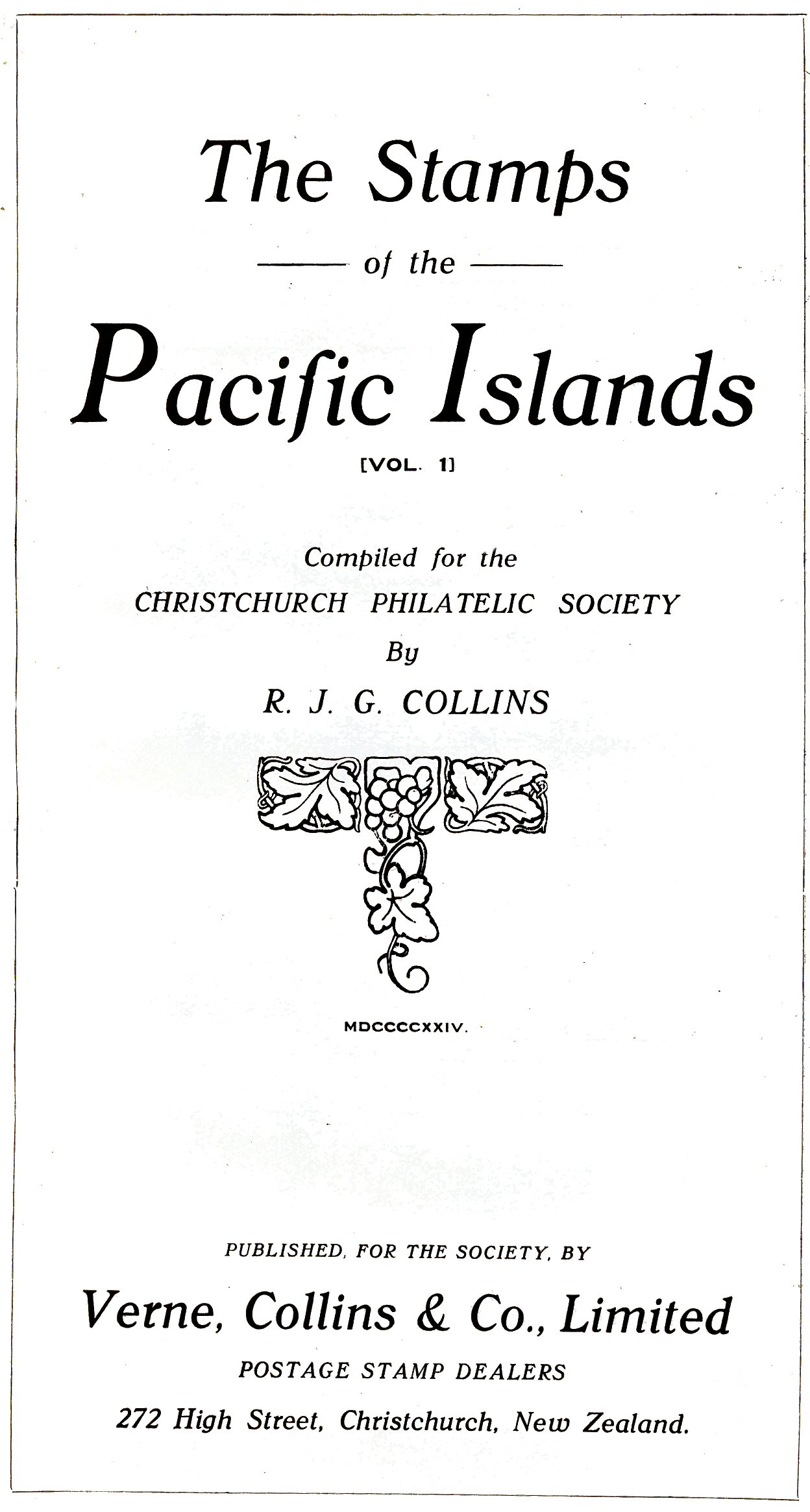R.J.G. Collins 1924 in "The Stamps of the Pacific Islands"
