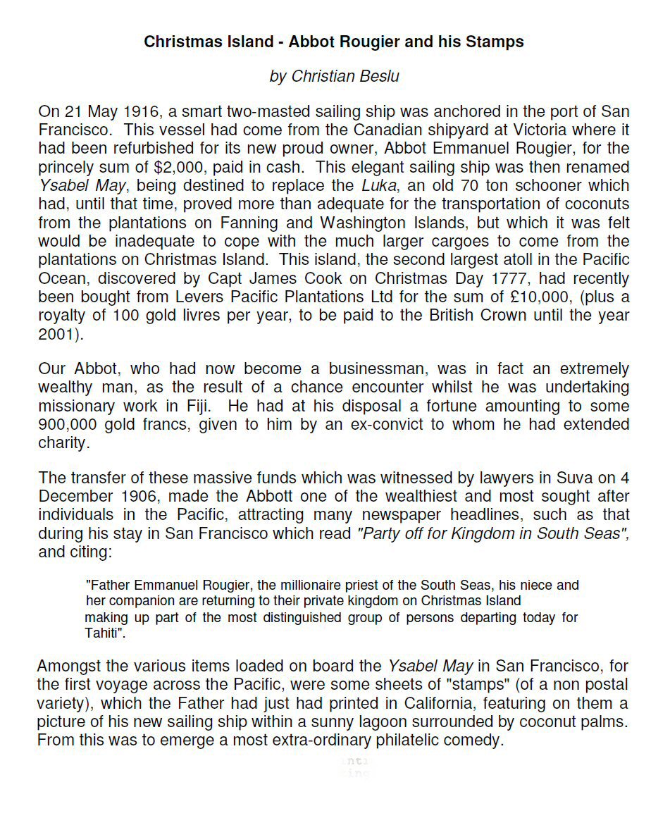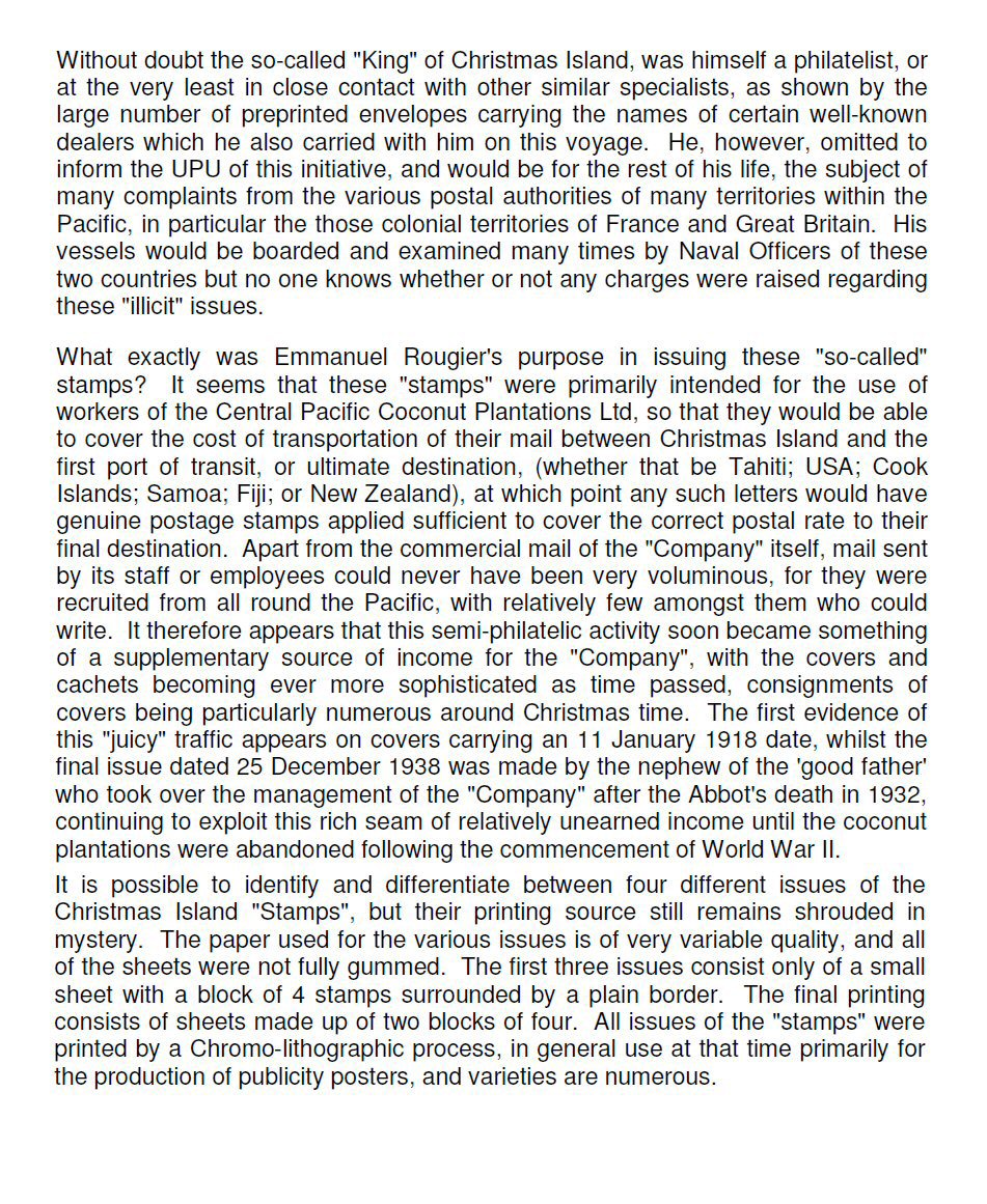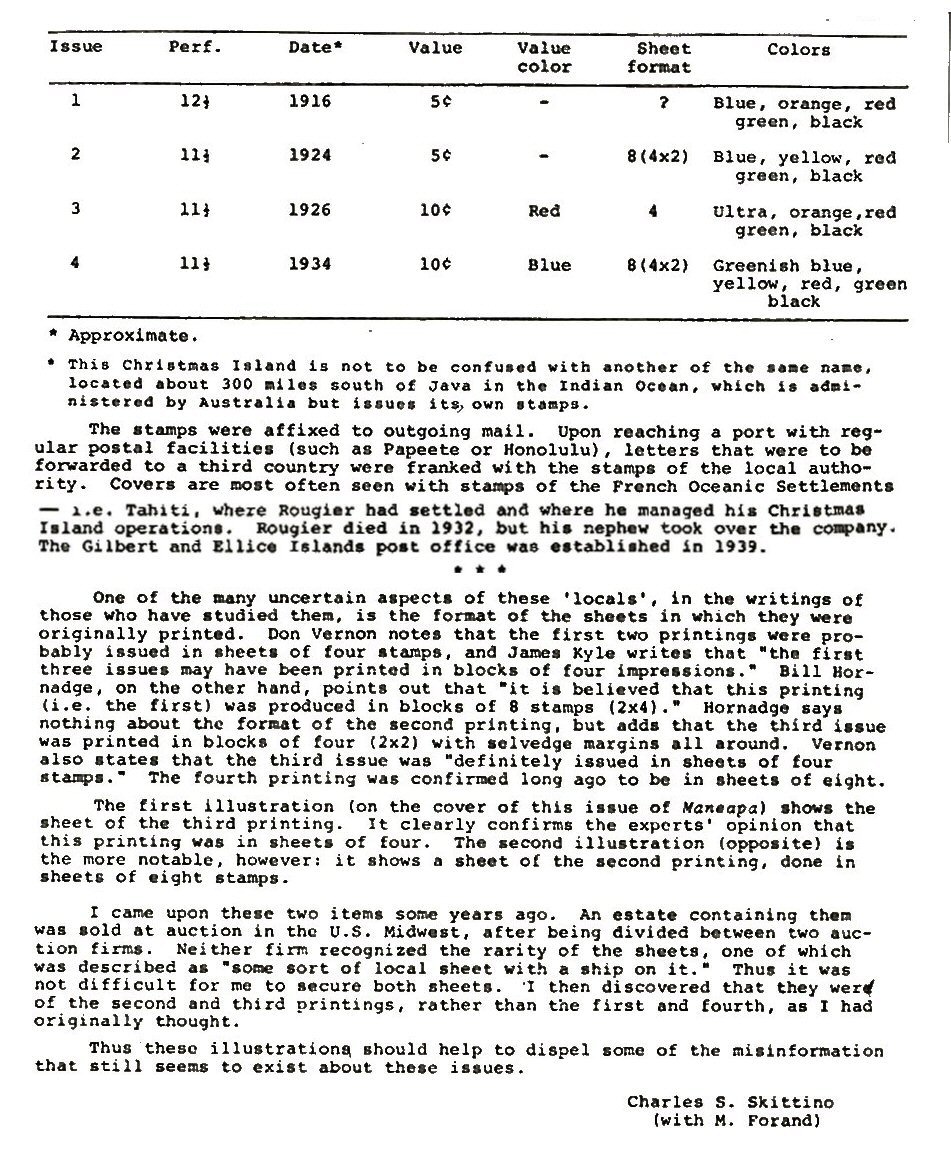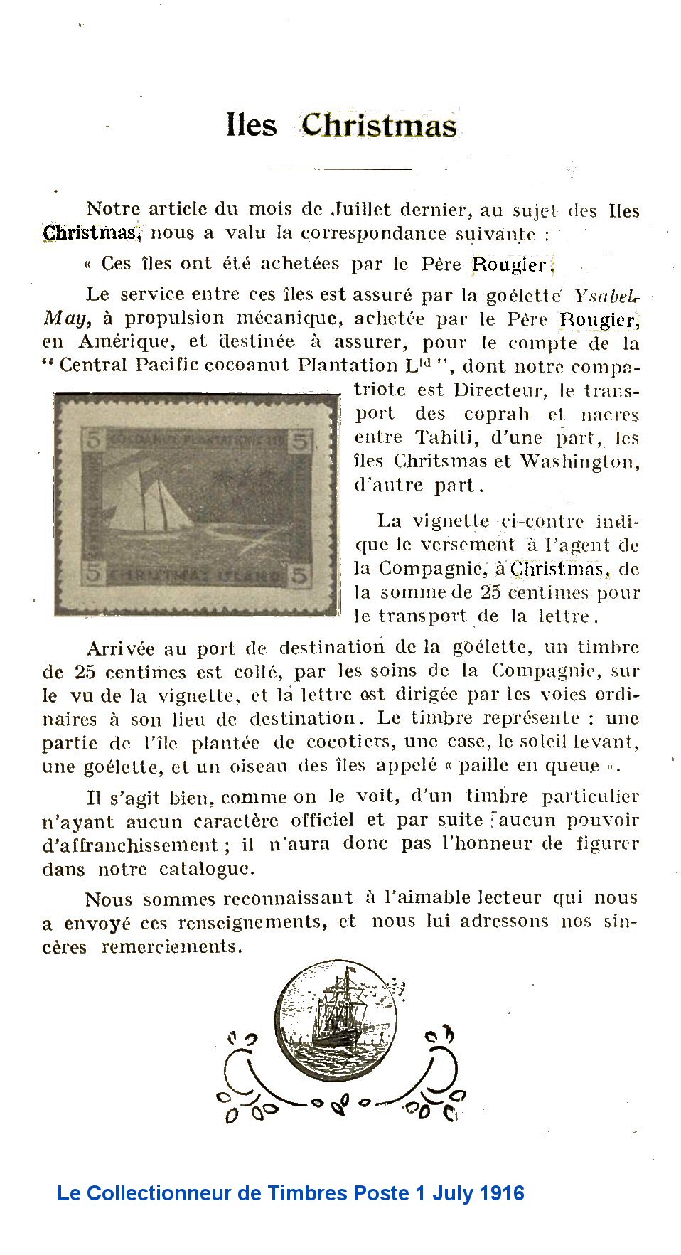 R.J.G. Collins 1924 in "The Stamps of the Pacific Islands"