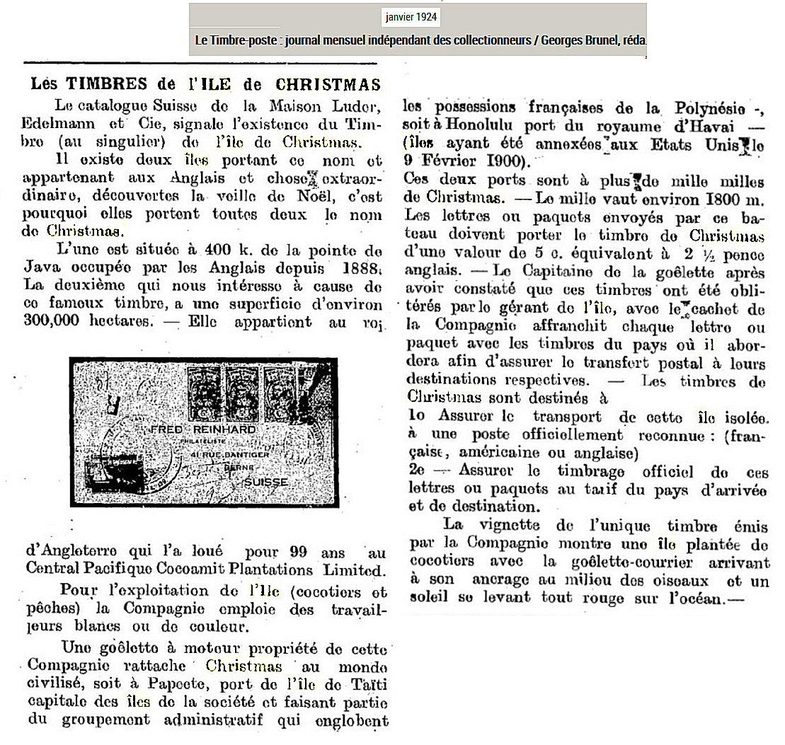 Article in the January 1924 French stamp magazine "Le Timbre-poste"