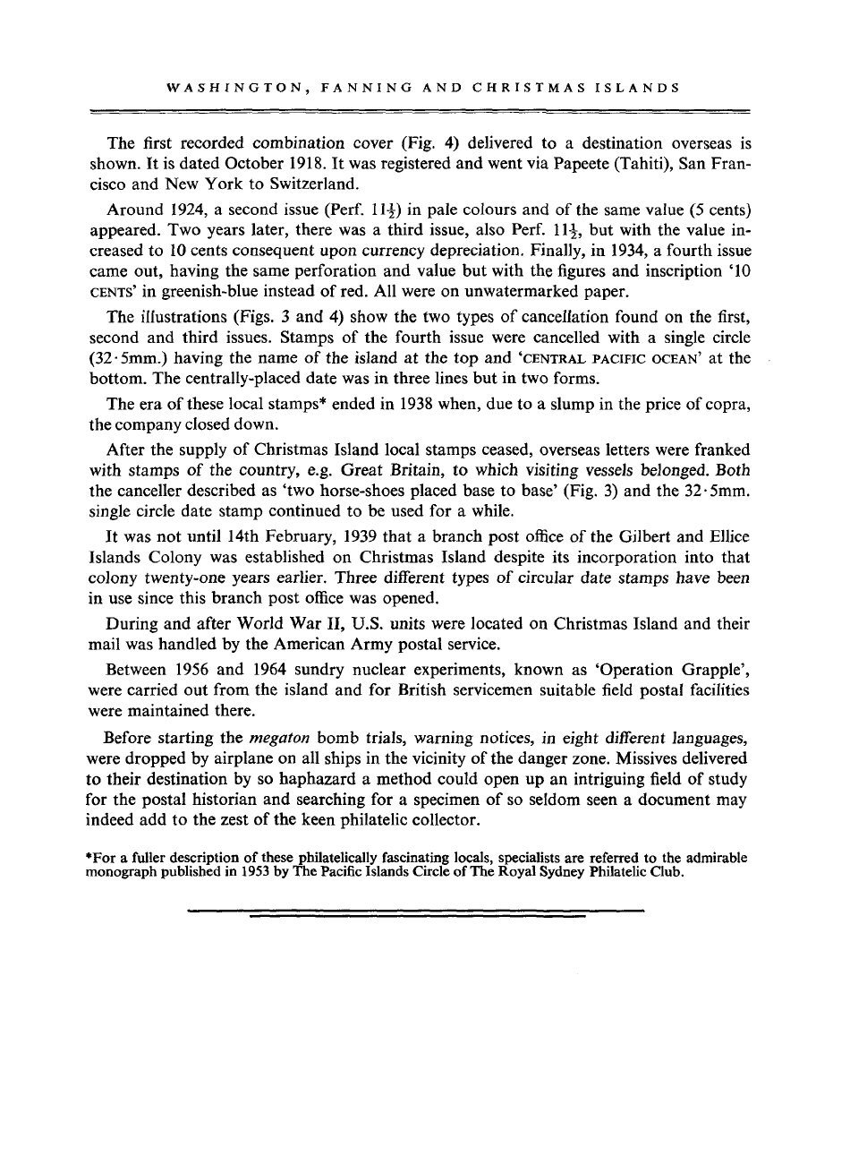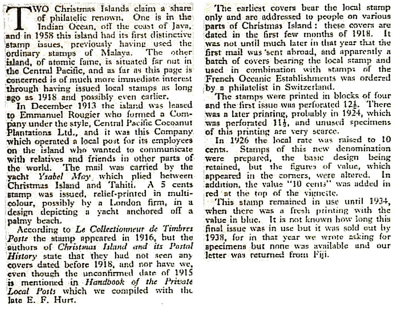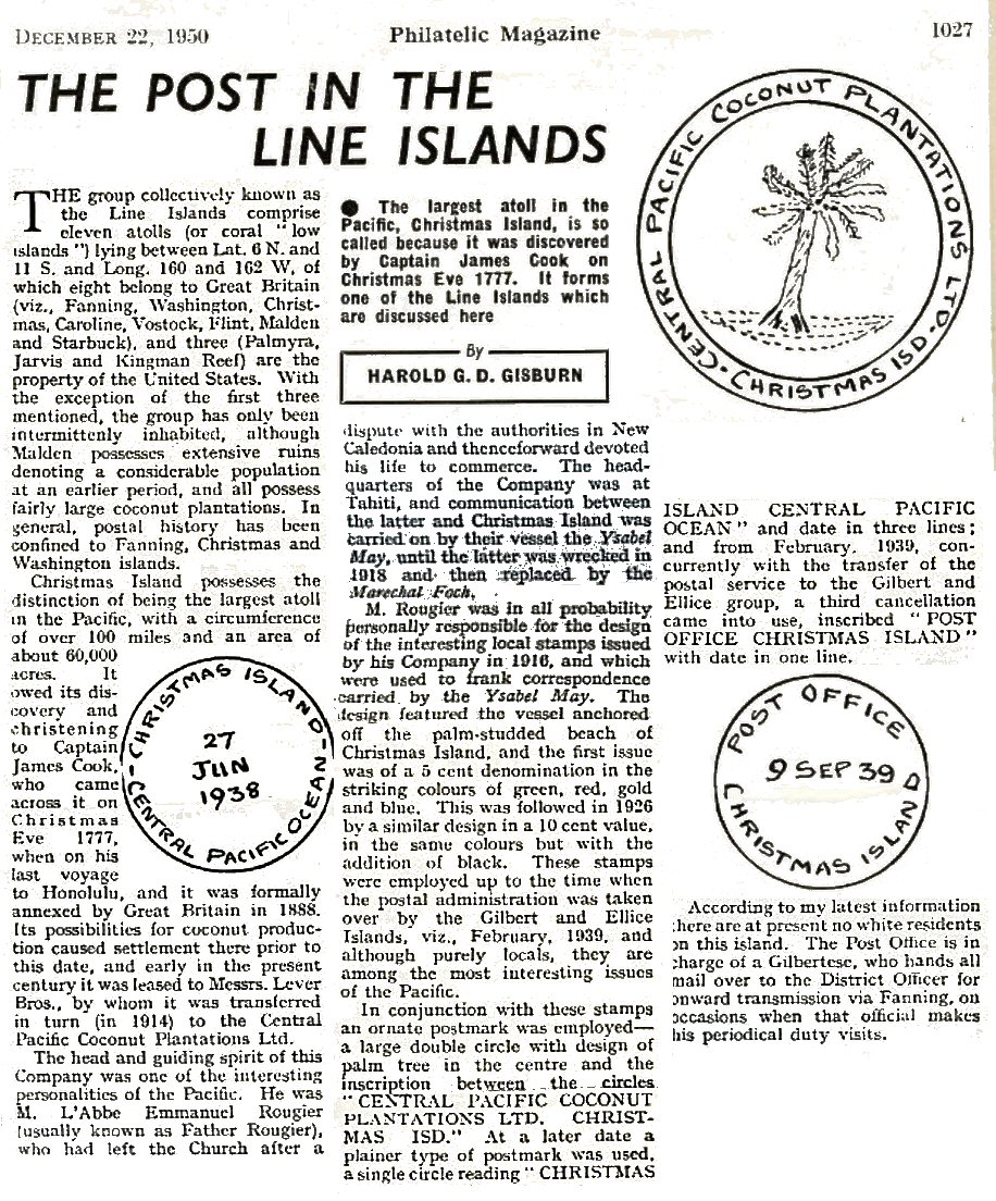 1950 Gisburn: The Post in the Line Islands -- the Christmas Island part of the article only.