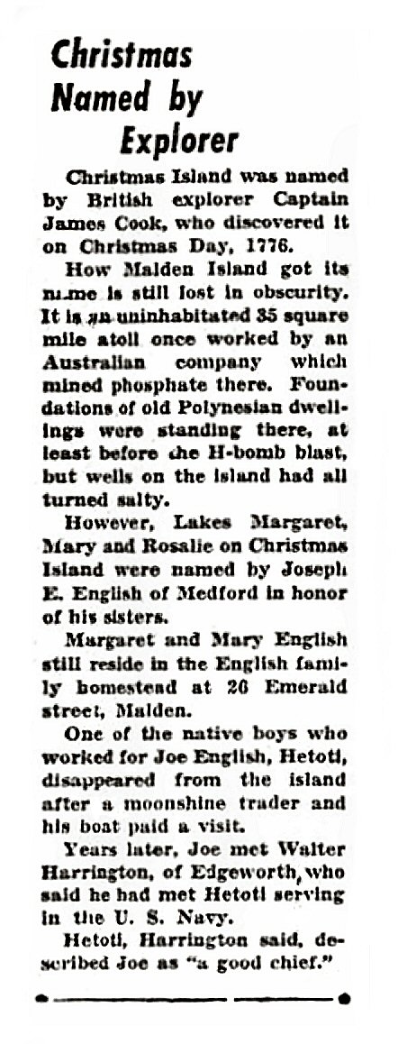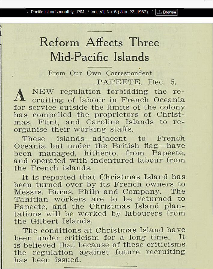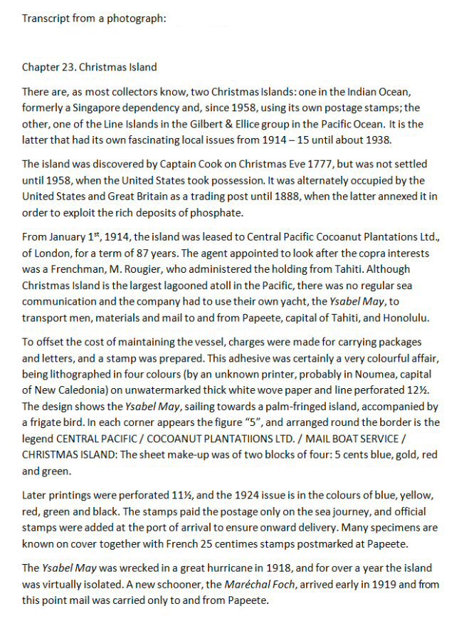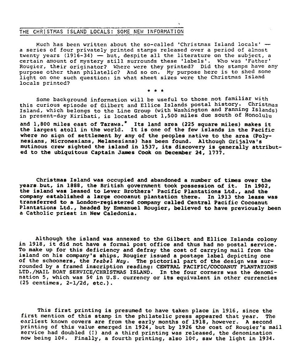 1950 Gisburn: The Post in the Line Islands -- the Christmas Island part of the article only.