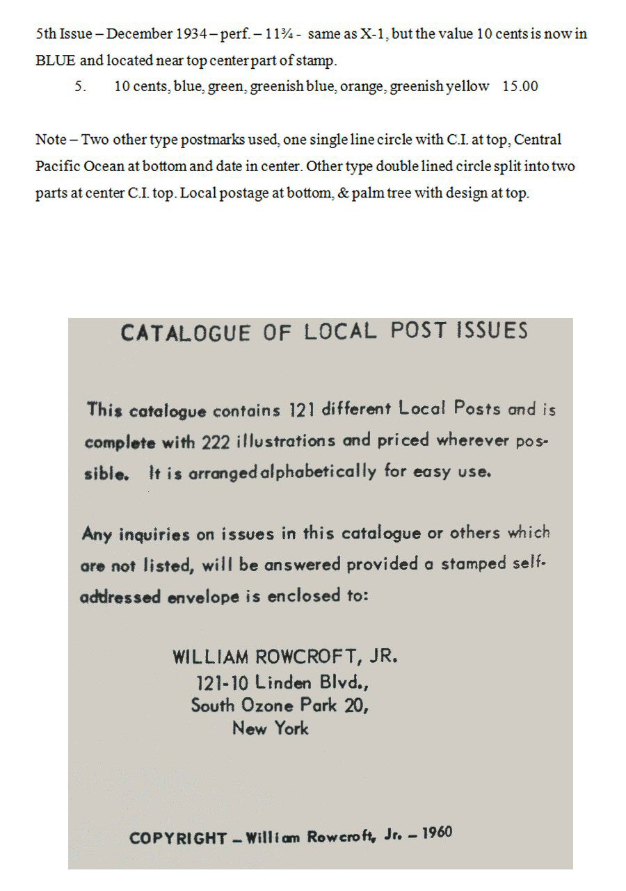 William Rowcroft Jr., 1960 - "Catalogue of local post issues"