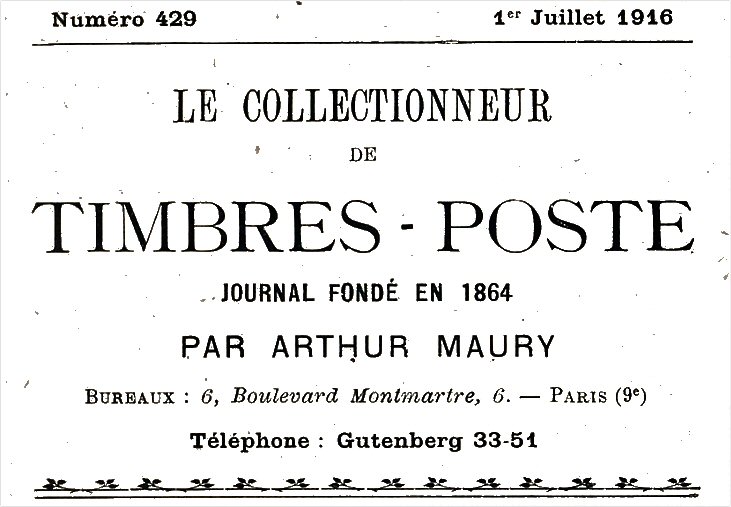 Le Collectionneur de timbres poste 1 October 1916 - Information by Emmanuel Rougier himself