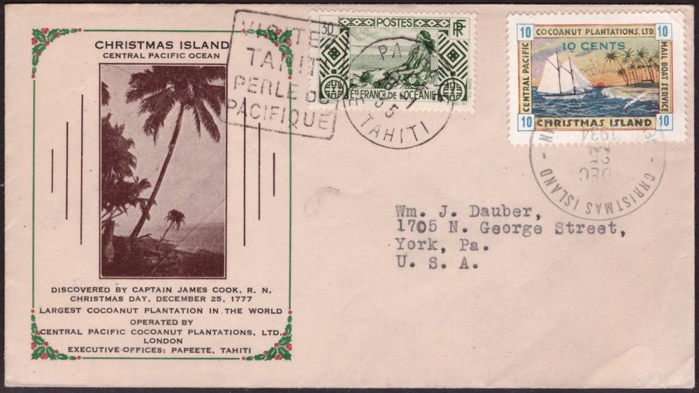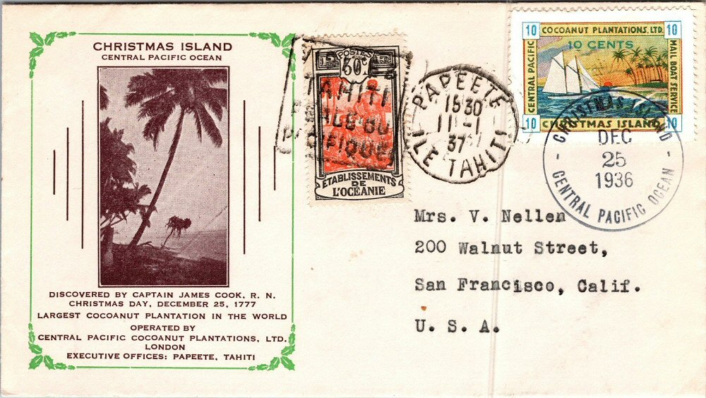 Please don't be astonished when you read here at the bottom of the cachet: "Operated by Central Pacific Cocoanut Plantations Ltd, London" or at other places