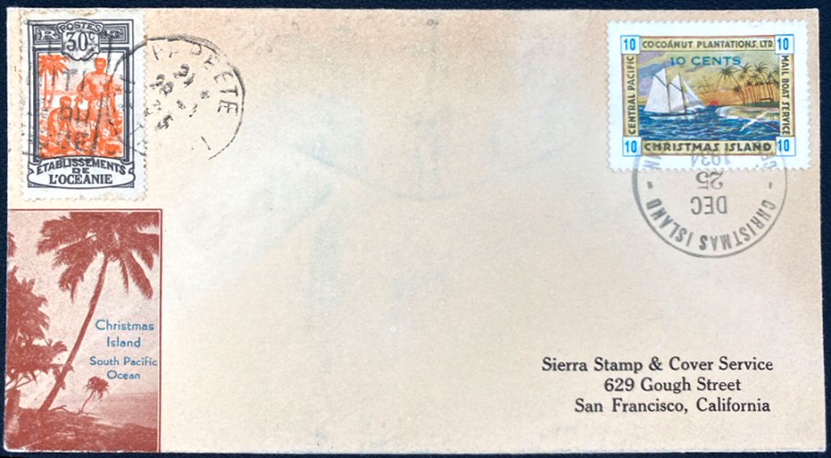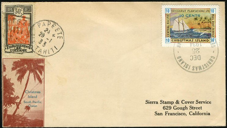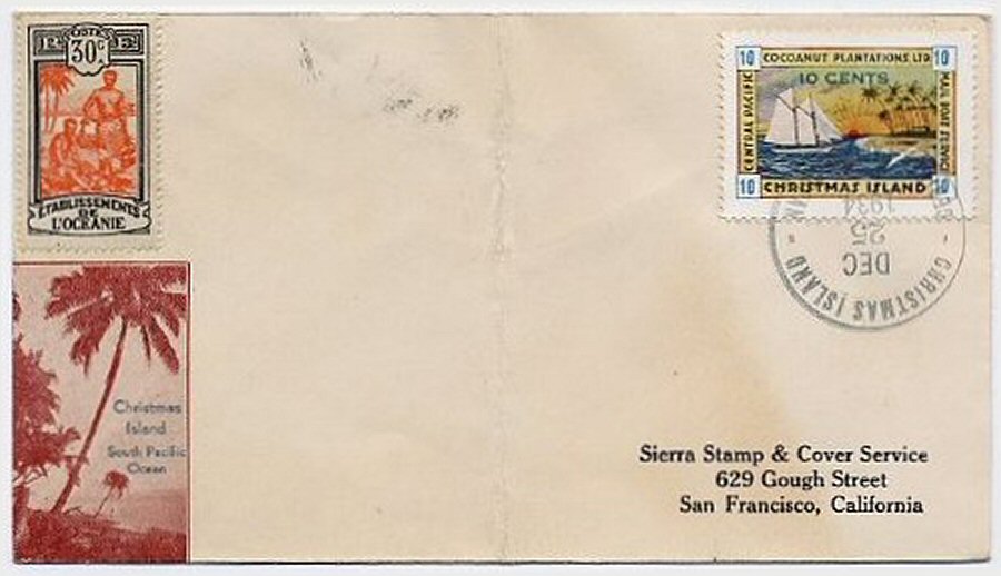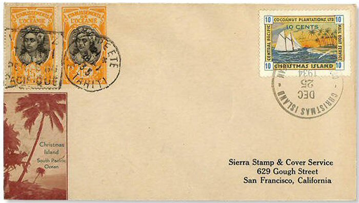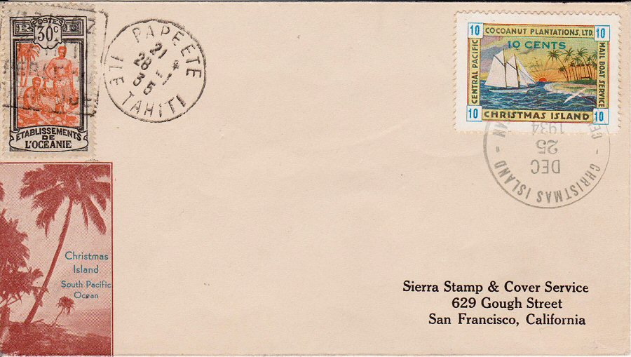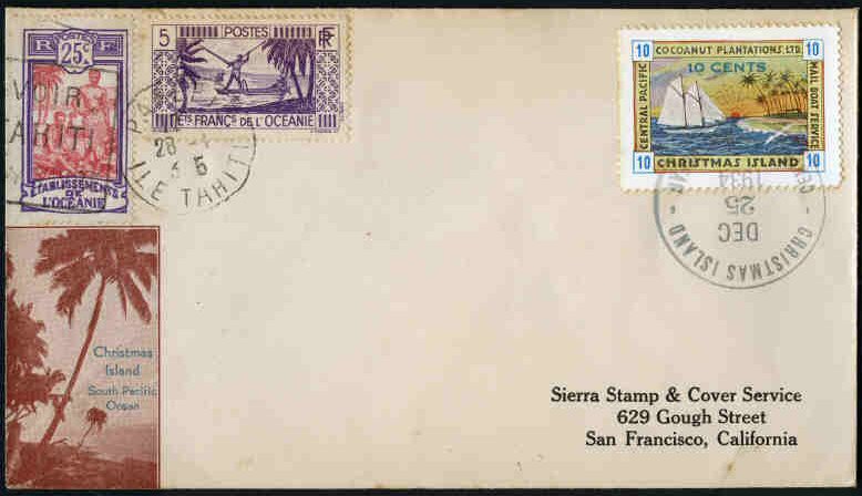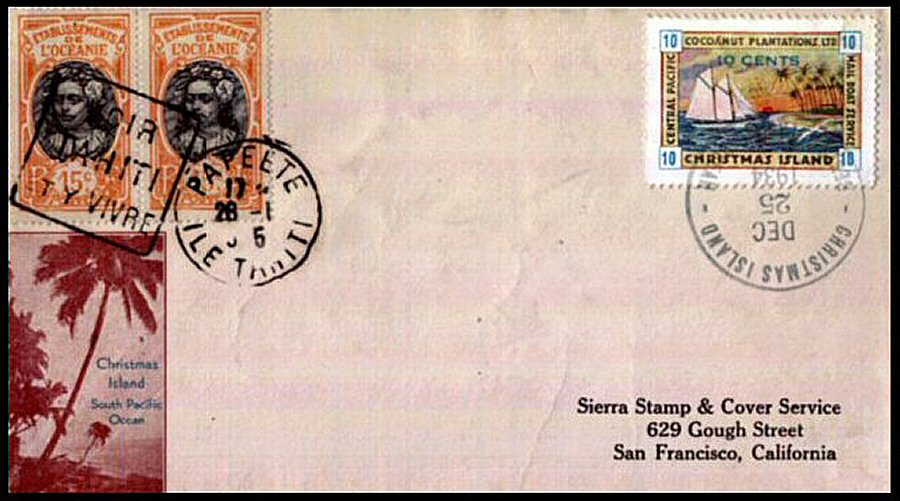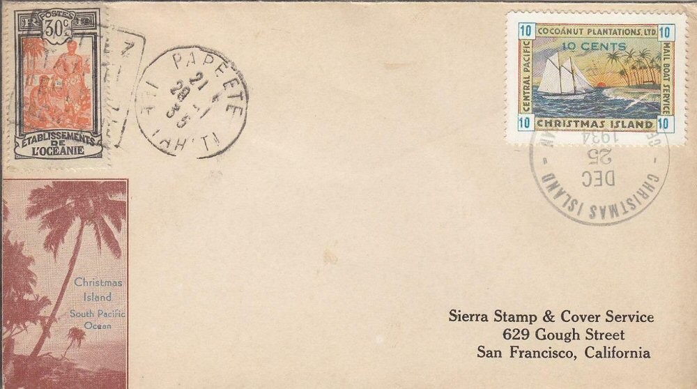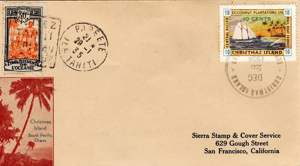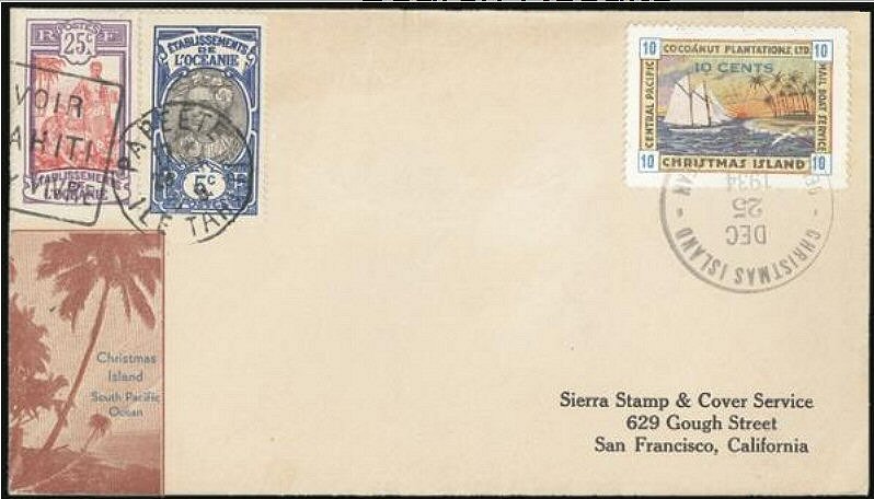 This company advertised for instance in the boyscout paper: "Boy's Life" 1935: Mailed from Christmas Island: South Pacific, via Papeete, a beautifull