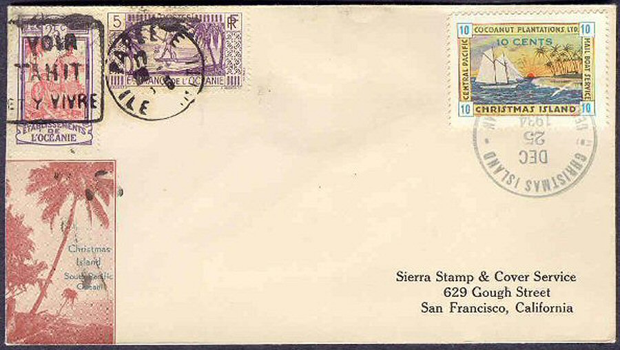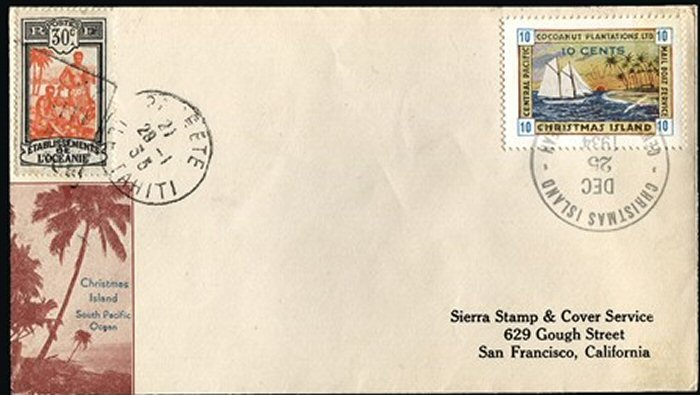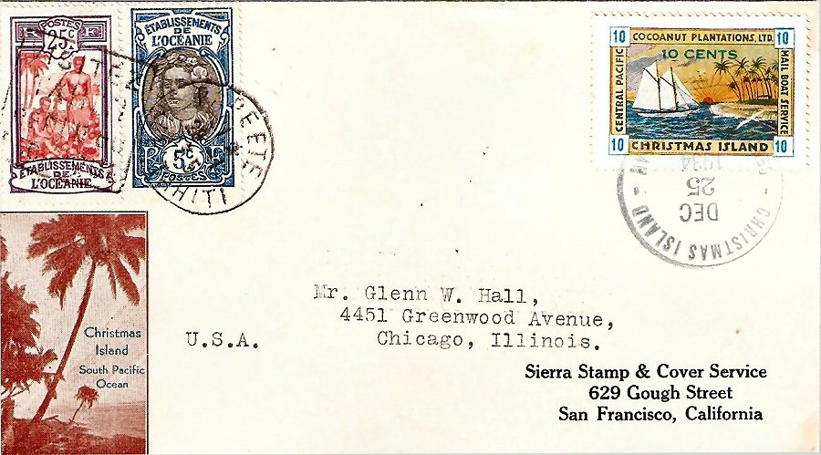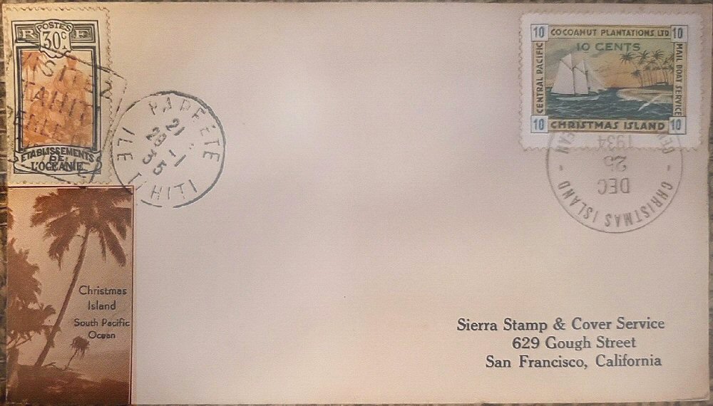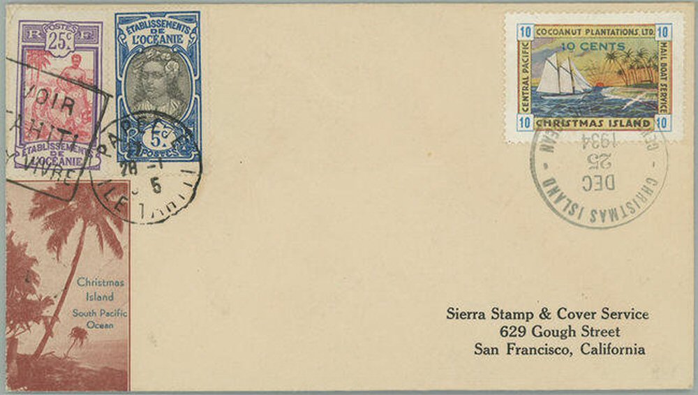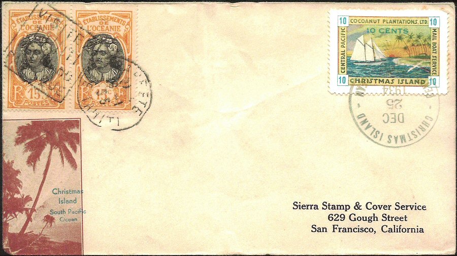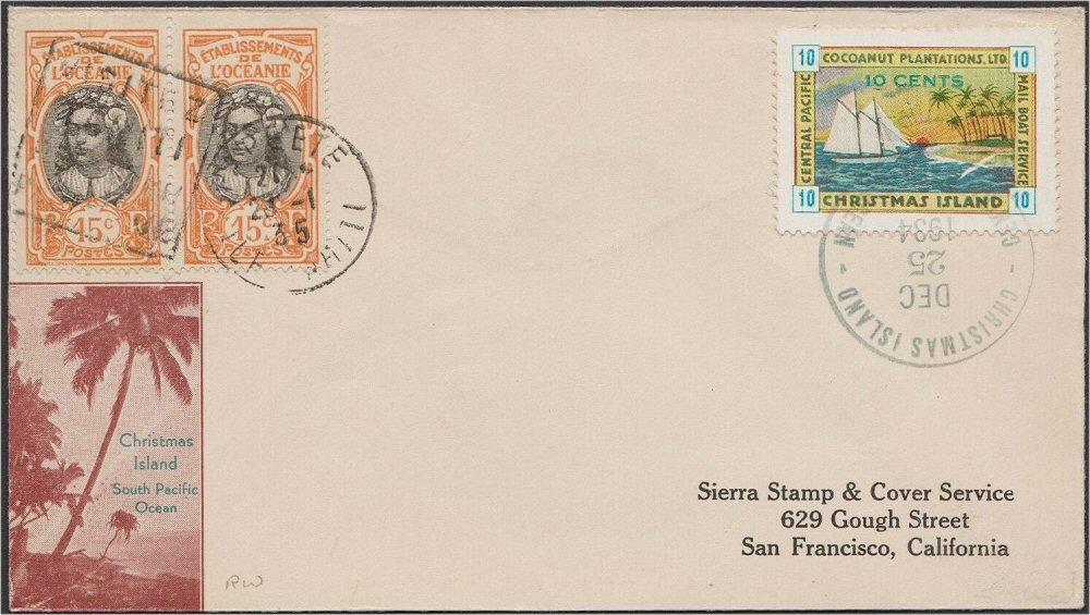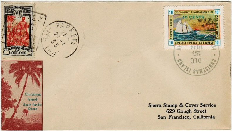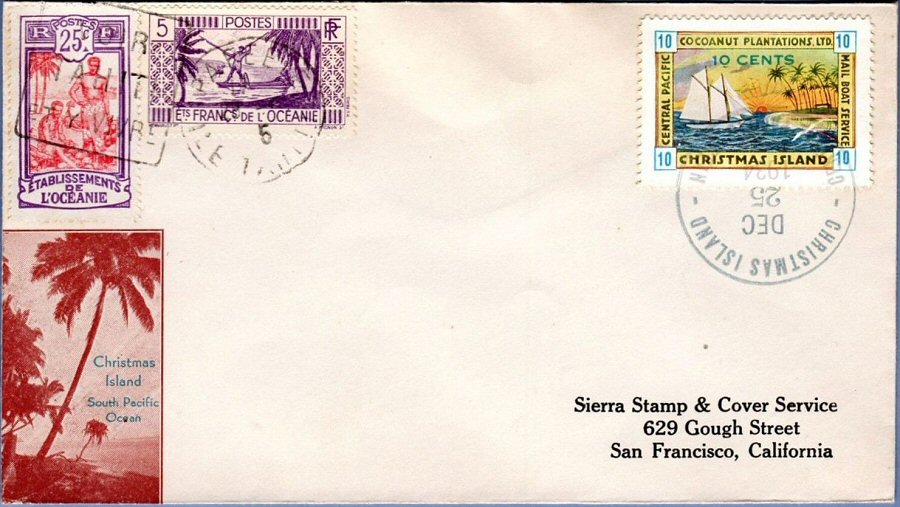 This company advertised for instance in the boyscout paper: "Boy's Life" 1935: Mailed from Christmas Island: South Pacific, via Papeete, a beautifull