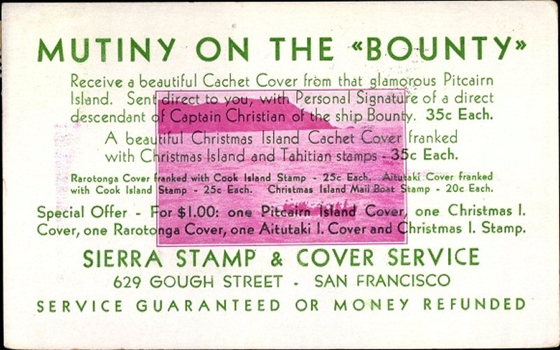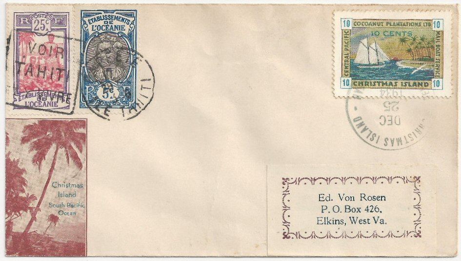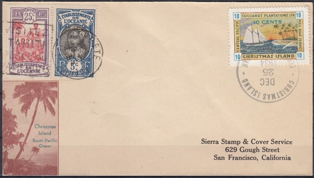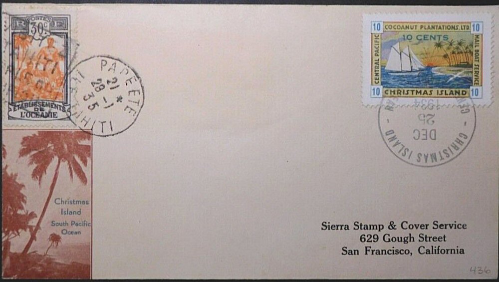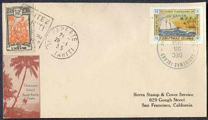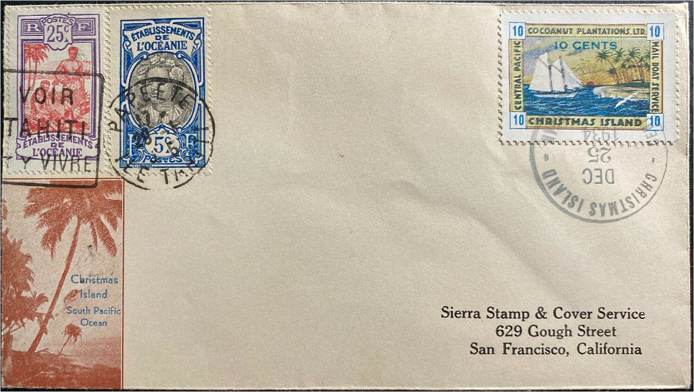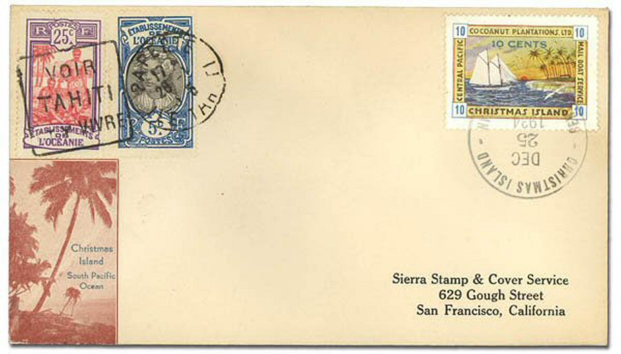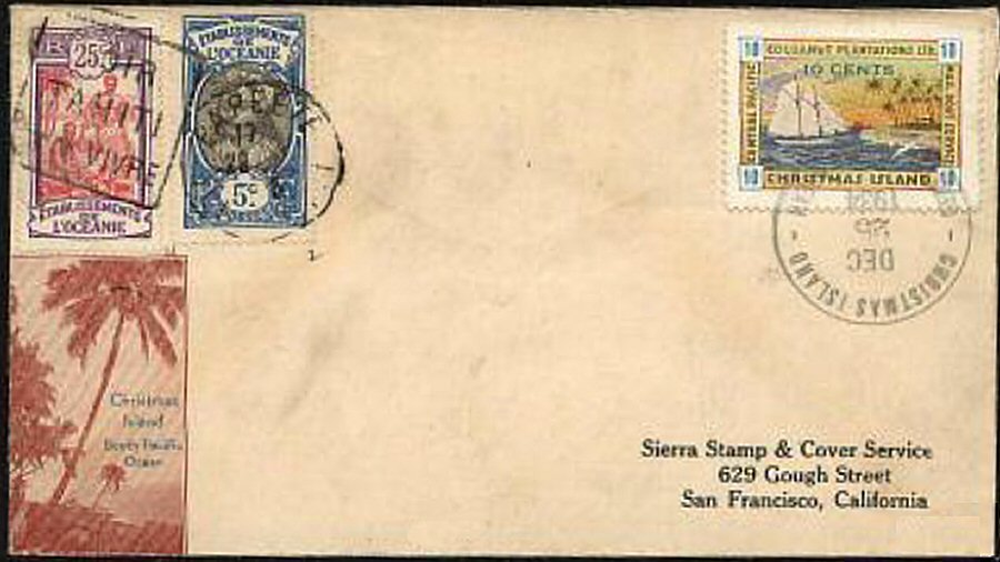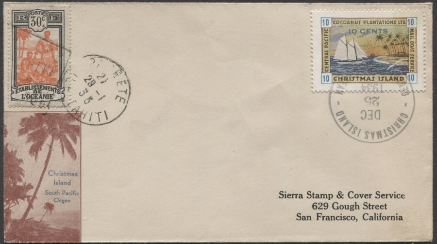 This company advertised for instance in the boyscout paper: "Boy's Life" 1935: Mailed from Christmas Island: South Pacific, via Papeete, a beautifull