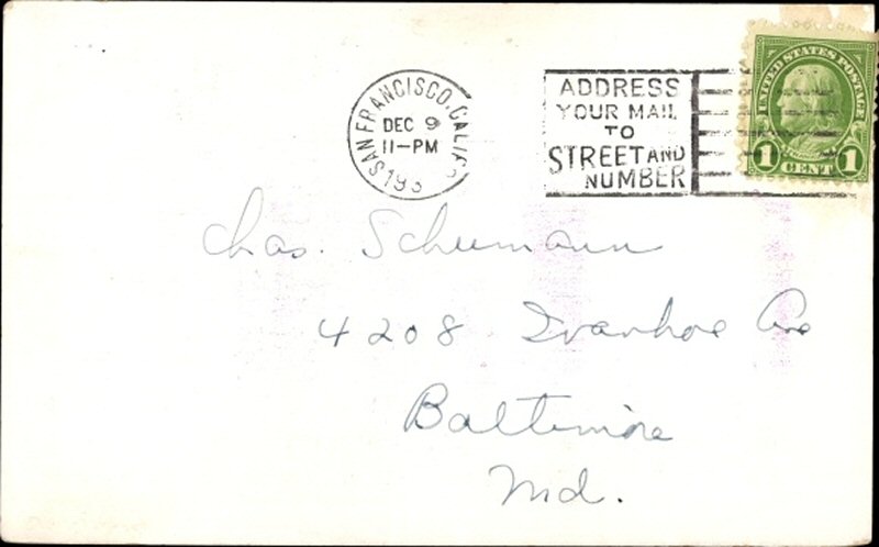 Advertisement card from 1935 possibly. Address side of the card.