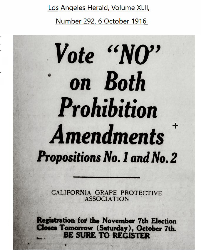 The slogan on the grapes-vignette was published by the "California Grape Protective Association" in 1916.