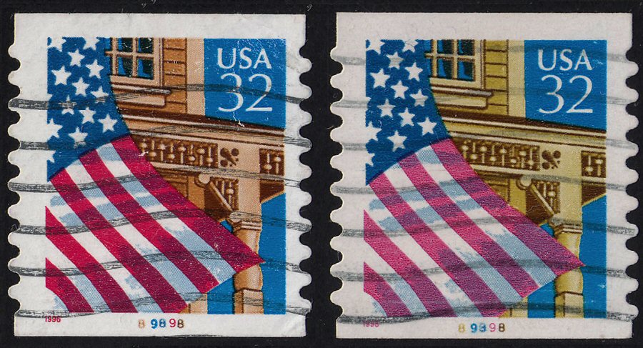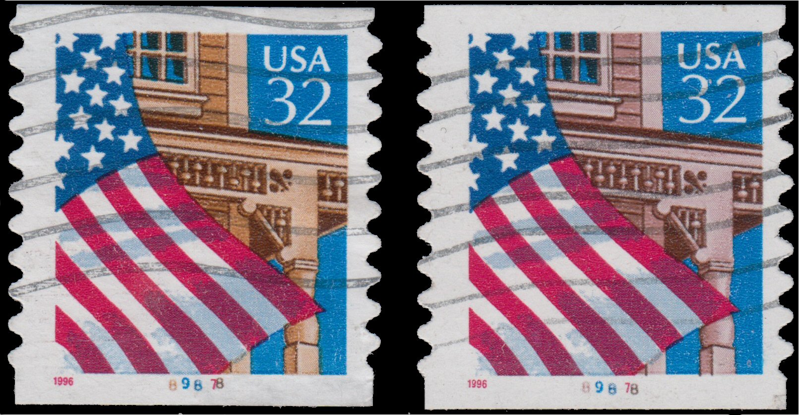 All stamps of 2915A Part 2 : New Die Cut (clean cut with small "paper bridges"), pictures of those bridges at The "A" Coils. | |